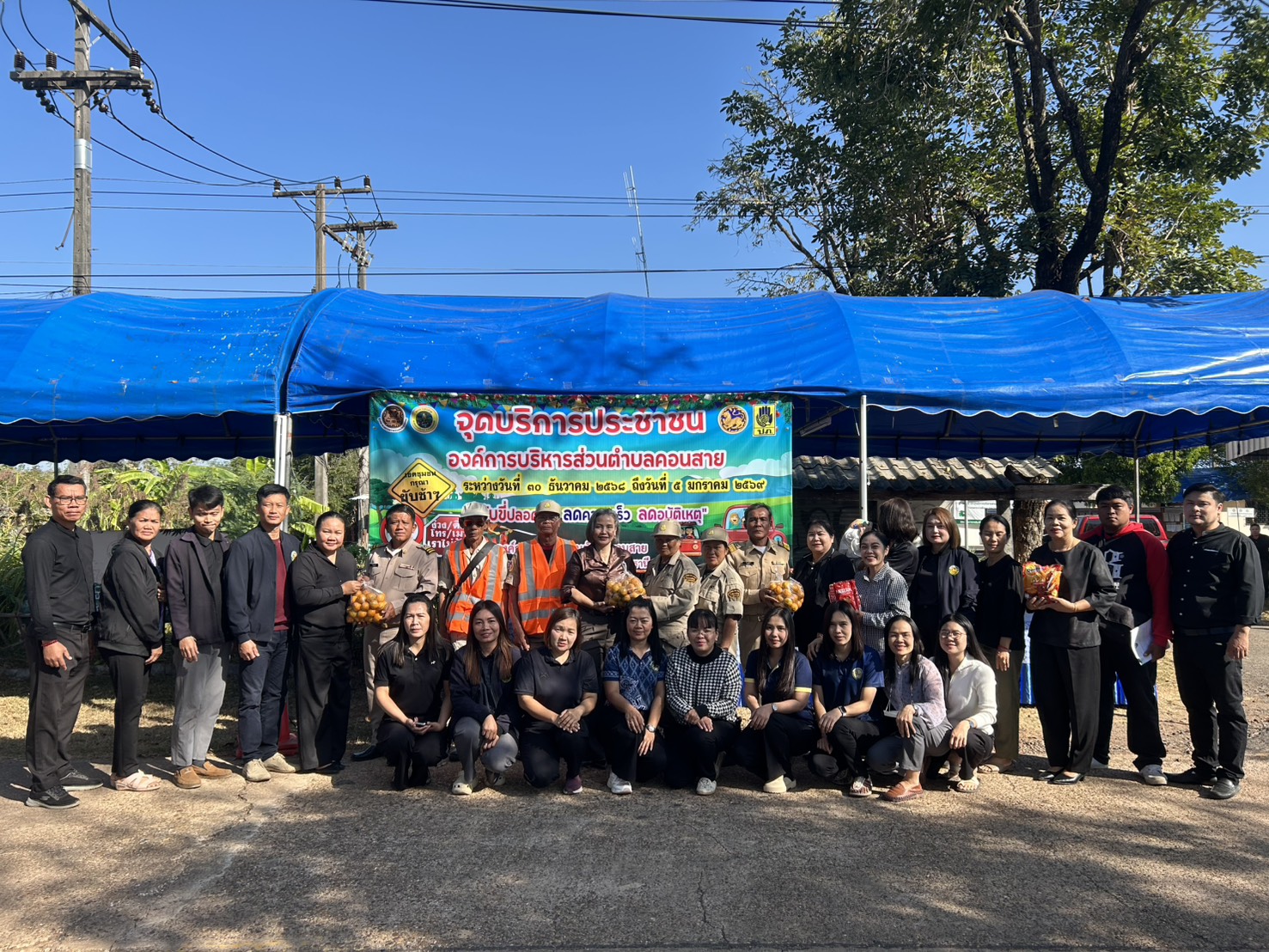 "จุดบริการประชาชน" หน้าสำนักงานองค์การบริหารส่วนตำบลคอนสาย ตามนโยบายลดอุบัติเหตุทางถนนช่วงเทศกาลปีใหม่ 2569 คุมเข้ม 7 วันอันตราย (วันที่ 30 ธันวาคม 2568 ถึง วันที่ 5 มกราคม 2569) ❣️ยินดีต้อนรับกลับสู่มาตุภูมิ ❣️เดินทางปลอดภัย และโชคดีตลอดการเดินทาง